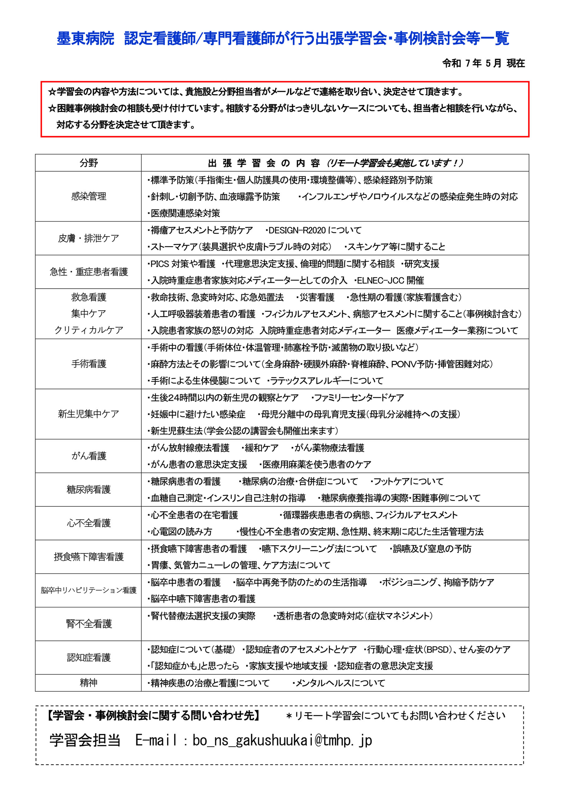 スペシャリストが行う出張学習会・事例検討会等一覧